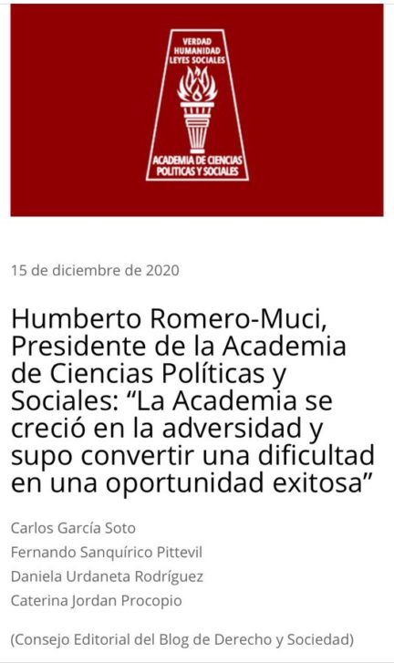 Entrevista al Dr. Humberto Romero-Muci, Presidente de la Academia de Ciencias Políticas y Sociales por el Consejo Editorial del Blog de Derecho y Sociedad