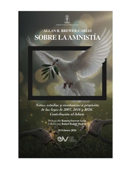 Disponible a texto completo el libro: Sobre la amnistía. Notas, estudios y enseñanzas a propósito de las leyes de 2007, 2016 y 2026. Contribución al debate. Autor: Allan R. Brewer-Carías Inicio » Noticias SOBRE LA AMNISTÍA Notas, estudios y enseñanzas a propósito de las leyes de 2007, 2016 y 2026 Contribución al debate Prólogo por Ramón Escovar León Colofón por Rafael Badell Madrid Descargue el documento [et_social_share]
