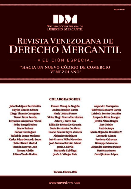 Disponible a texto completo la Revista Venezolana de Derecho Mercantil. V Edición Especial, 2026. «Hacia un nuevo Código de Comercio Venezolano» Inicio » Noticias Revista Venezolana de Derecho Mercantil V Edición Especial, 2026 «Hacia un nuevo Código de Comercio Venezolano» Descargue el documento [et_social_share]