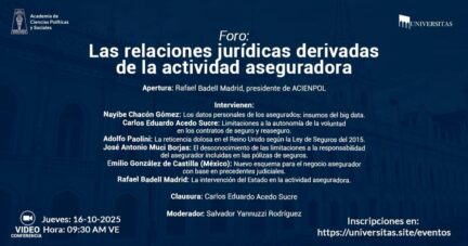 Foro: Las relaciones jurídicas derivadas de la actividad aseguradora. Jueves: 16-10-2025. Hora: 09:30 AM VE