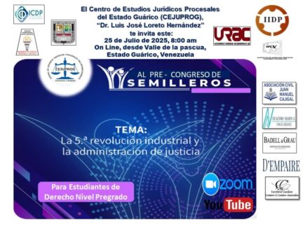 Pre-Congreso de Semilleros. La 5ta revolución industrial y la administración de justicia. Viernes 25 de julio de 2025. Hora: 8:00 a.m. On Line, desde Valle de la Pascua, Estado Guárico, Venezuela