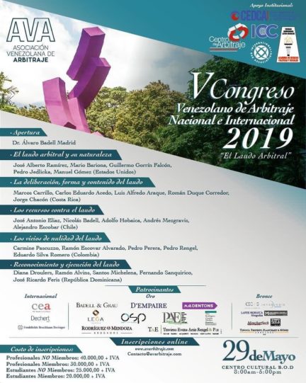 V Congreso Venezolano de Arbitraje Nacional e Internacional 2019. «El Laudo Arbitral» Inicio » Eventos [et_social_share]