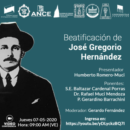 S.E. Baltazar Cardenal Porras, Dr. Rafael Muci Mendoza y P. Gerardino Barrachini expondrán el jueves, 07-05-2020 a las 9:00 AM (hora 🇻🇪) sobre:“Beatificación de José Gregorio Hernández”. Aspectos eclesiásticos, canónicos, obra científica, académica y profesional.