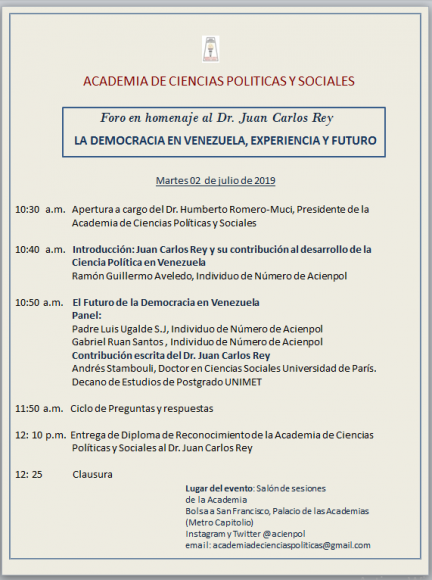 Foro en homenaje al Dr. Juan Carlos Rey. la Democracia en Venezuela, Experiencia y FuturoInicio » Eventos [et_social_share]